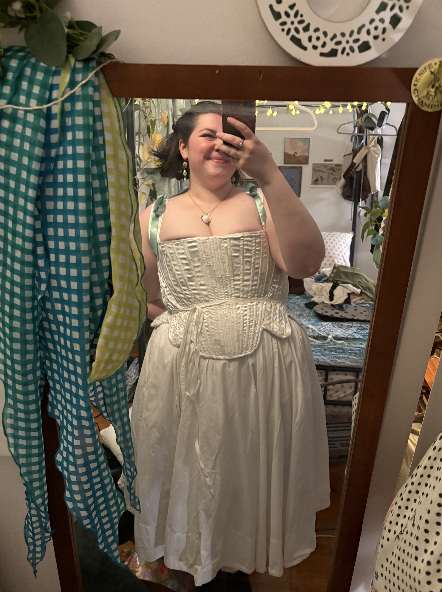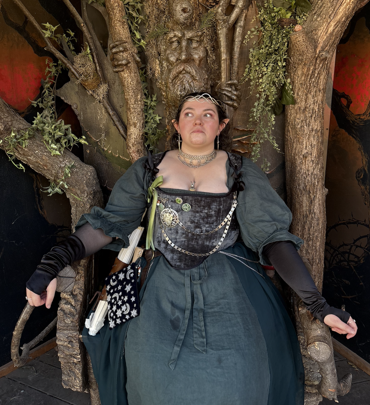 Claire sews when she has time and an idea for a new piece. She creates cosplays by piecing together patterns. Most frequently, Claire makes corsets for the Renaissance Festival, weddings, and whenever she wants to wear them!